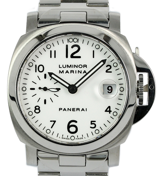 ![]() | Panerai Luminor Mainer Model: PAM00051 Watch Description: Steel case with white dial, mechanical self-winding movement, 42 hours of power reserve, Steel Panerai bracelet steel with double folding clasp. Age: 2005 Movement: Automatic Movement Calibre: OP III Case Size: 40mm Includes: Box & Papers Condition: 9/10 Price: NZ$5,950.00 Images Of This Panerai Watch » |
