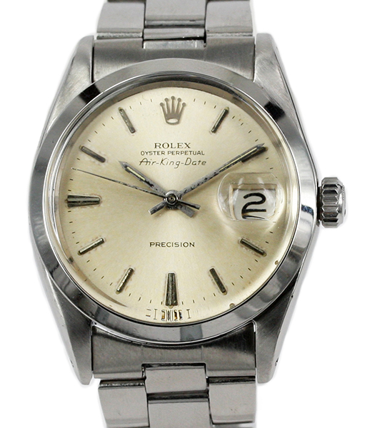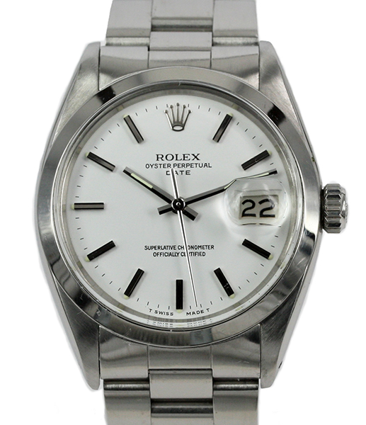 ![]() | Rolex Oyster Perpetual Date Model: 1500 Watch Description: Steel case with white dial and silver batons marking the hours, date at three o'clock. Watch fitted with Rolex steel Oyster link bracelet and folding clasp. Bracelet ref 78350 (Inside case back marked IV65) Age: 1965 Movement: Automatic Movement Calibre: 1570 Case Size: 35mm Includes: Box Condition: 9/10 Price: NZ$3,500.00 Images Of This Rolex Watch » |