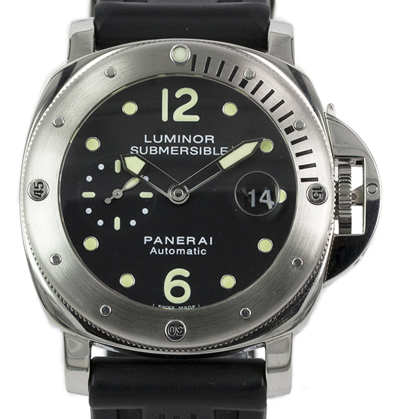 ![]() | Panerai Luminor Mariner Submersible Model: PAM00024 Watch Description: Stainless Steel case with date, Uni-directional divers rotating bezel, Water resistant to 300m with Panerai black rubber strap and Panerai push button butterfly folding deployment clasp. Comes with additional nylon Panerai velcro strap and changing tool Age: 2010 Movement: Automatic Case Size: 44mm Includes: Box & Papers Condition: 9/10 Price: NZ$7,500.00 Images Of This Panerai Watch » |
