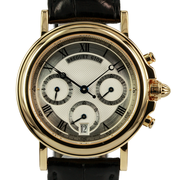 ![]() | Breguet Marine Chronograph Model: 3460BA/12/A90 Watch Description: 18ct yellow gold case and bracelet calibre 576 no 2015 Age: 1999 Movement: Automatic Case Size: 35.5mm Includes: Box & Papers Condition: 9/10 New Retail Price: NZ$59,000.00 Price: SOLD Images Of This Breguet Watch » |