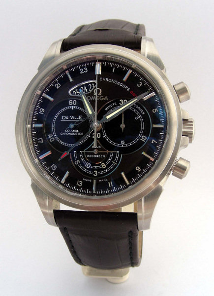 | Omega De Ville Co Axial GMTModel: 422.13.44.52.13.001 Watch Description: Gents stainless steel Chronograph Chronoscope Age: 2008 Movement: Automatic Case Size: 44mm Includes: Box & Papers Condition: 10/10 New Retail Price: NZ$11,520.00 Price: SOLD