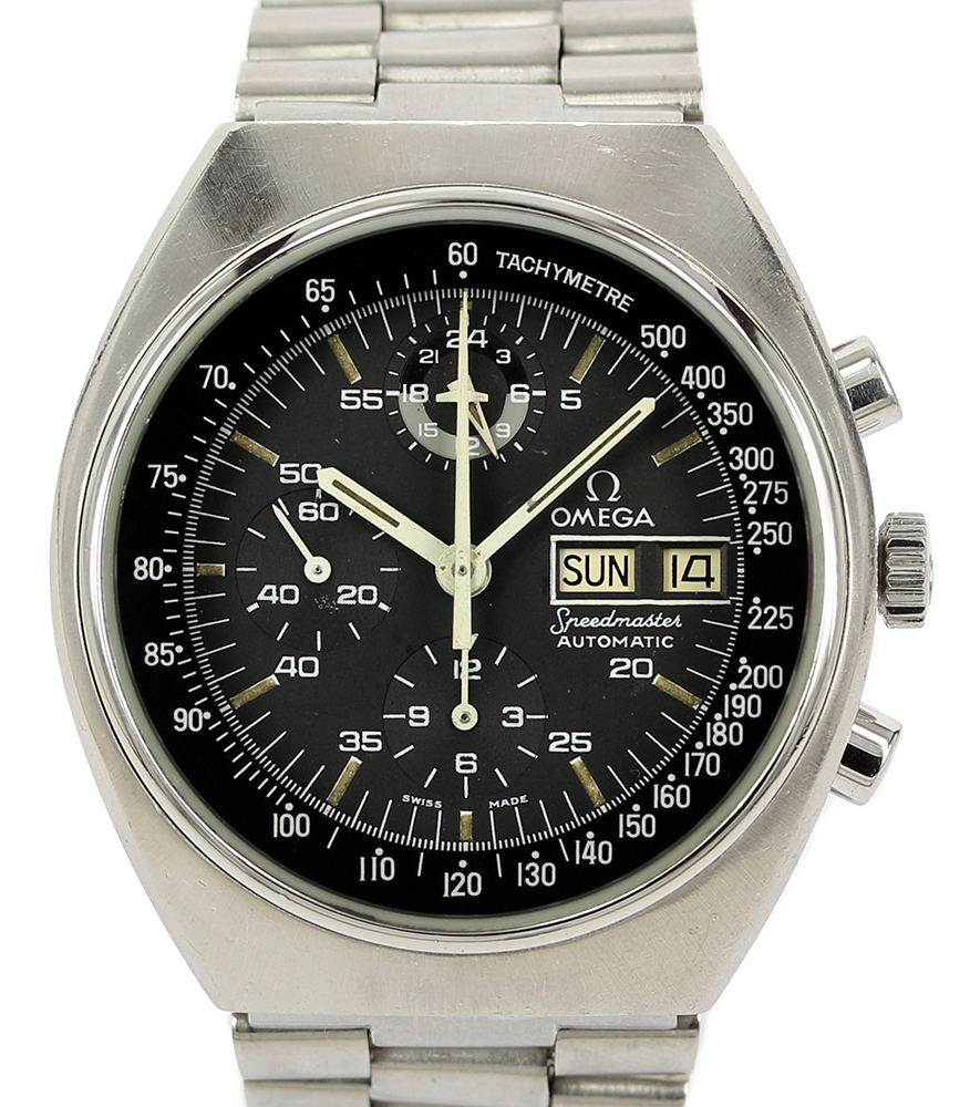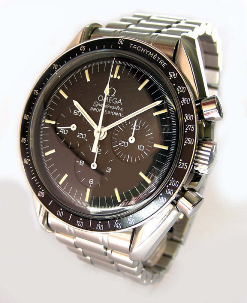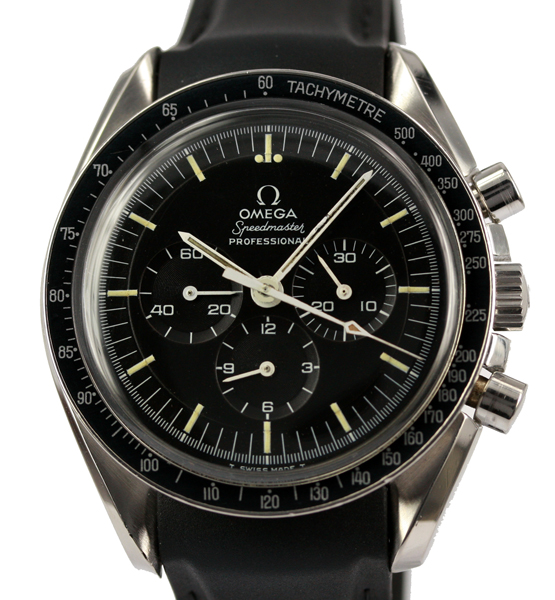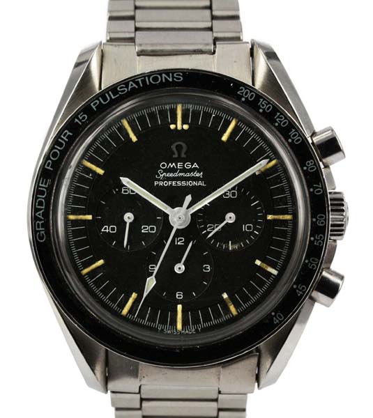 | Omega Speedmaster Chronograph Vintage Moon WatchModel: 35705000 Watch Description: Steel Case and Bracelet Black Dial and Bezel Insert. Flight Qualified by NASA for All Manned Space Missions. The First Watch Worn on the Moon. Age: 2005 Movement: Manual Movement Calibre: 861 Case Size: 41mm Includes: Box & Papers Condition: 9/10 Price: SOLD |