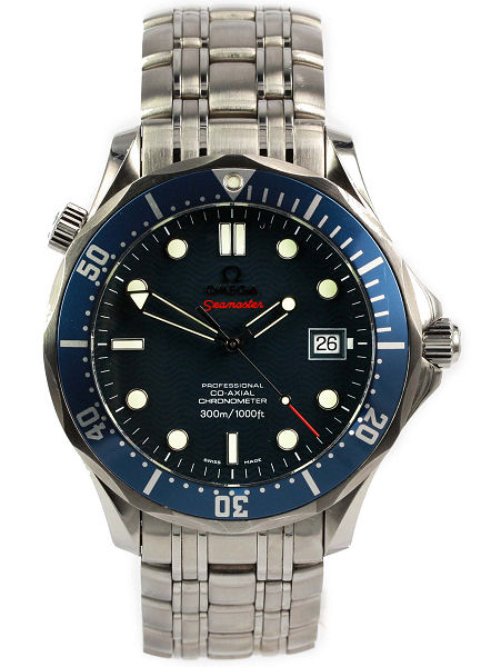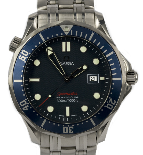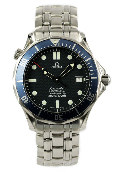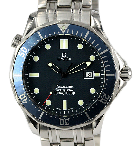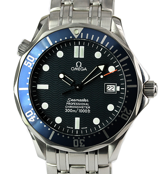 | Omega Seamaster Professional 300mModel: 25418000 Watch Description: Steel Case and Bracelet, 300m Water Resistant with Helium Release Valve, Blue Dial and Bezel with Quartz Movement. Age: 2003 Movement: Quartz Movement Calibre: 1538 Case Size: 41mm Includes: Box & Papers Condition: 9/10 New Retail Price: NZ$6,150.00 Price: SOLD |