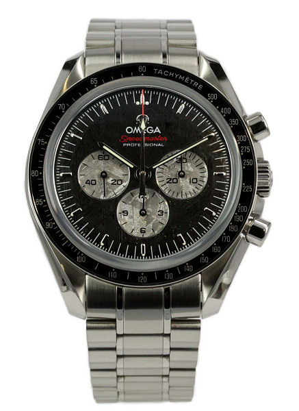 | Omega Speedmaster MoonModel: 31130423099001 Watch Description: Apollo-Soyuz 35th Anniversary Limited Edition with Meteorite Dial, calibre 1861 Age: 2010 Movement: Manual Case Size: 40mm Includes: Box & Papers Condition: 10/10 New Retail Price: NZ$14,750.00 Price: SOLD