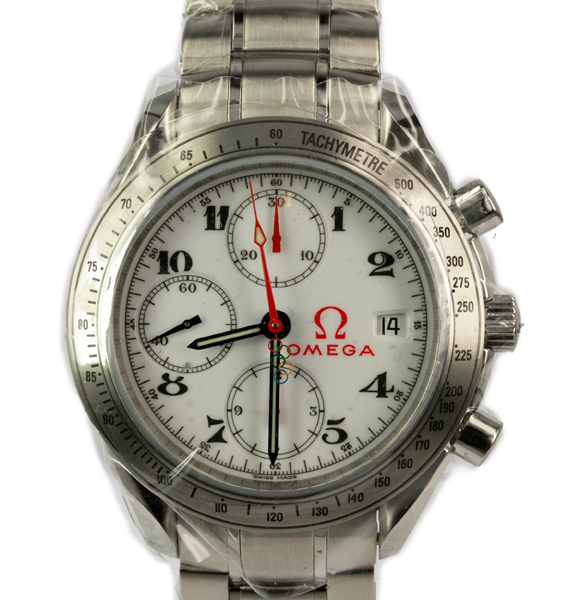 | Omega Speedmaster Special Olympic CollectionModel: 32310404004001 Watch Description: Automatic Chronograph Chronometer Stainless Steel Case and Bracelet, White Dial Age: 2013 Movement: Automatic Case Size: 40mm Includes: Box & Papers Condition: 10/10 New Retail Price: NZ$5,500.00 Price: SOLD |