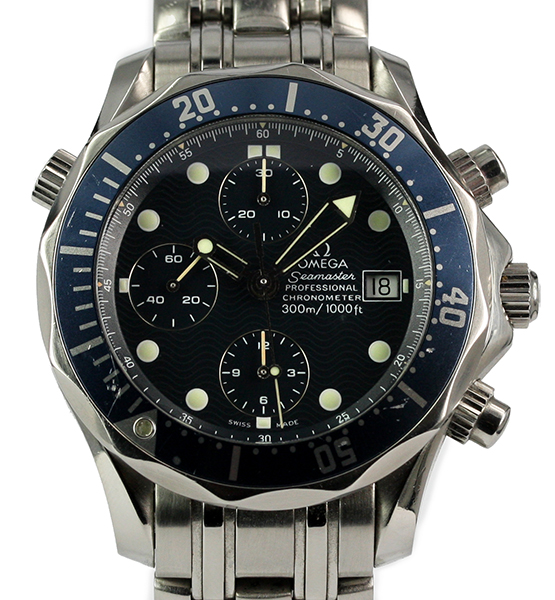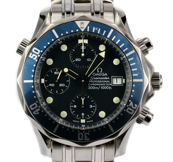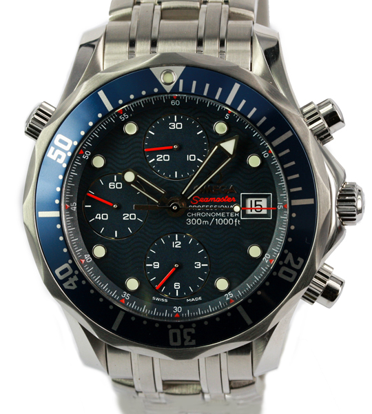 | Omega Seamaster Professional 300m Chronograph ChronometerModel: 25998000 Watch Description: Stainless Steel Case with Blue Dial and Bezel, Stainless Steel Omega Link Bracelet. Automatic Chronograph Chronometer movement cal . Age: 2000 Movement: Automatic Case Size: 42mm Includes: Box & Papers Condition: 8/10 Price: SOLD |