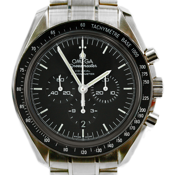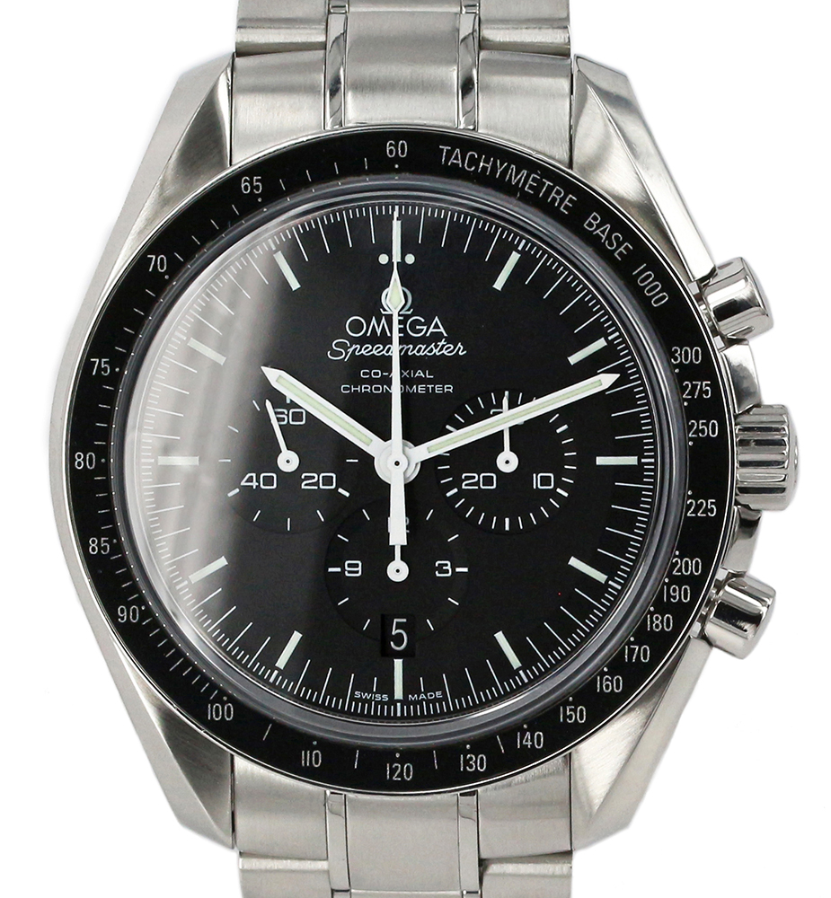 | Omega Moonwatch Co-Axial ChronographModel: 311.30.44.50.01.002 Watch Description: Steel Case and Bracelet, Automatic Self Winding Co-Axial Movement, Cal 3313, with Sapphire Crystal display Caseback, Chronograph and Date Functions Age: 2014 Movement: Automatic Case Size: 44mm Includes: Box & Papers Condition: 9.5/10 New Retail Price: NZ$10,475.00 Price: SOLD |