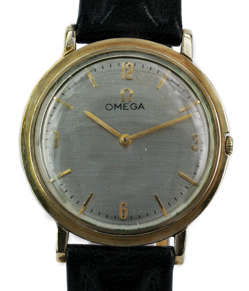 | Omega Vintage AutomaticModel: 2375 Watch Description: 14ct Gold Gents Bumper Movement, Cal 28.10 RA Case Back Engraved with Presentation Details. Watch fitted with Leather Strap Age: 1950s Movement: Automatic Case Size: 33mm Includes: Box Condition: 8/10 Price: SOLD |
