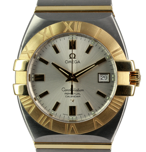 | Omega Gents ConstellationWatch Description: Gents stainless steel and 18ct gold with white dial Age: 1999 Movement: Quartz Case Size: 34mm Includes: Box Condition: 8/10 New Retail Price: NZ$6,000.00 Price: SOLD