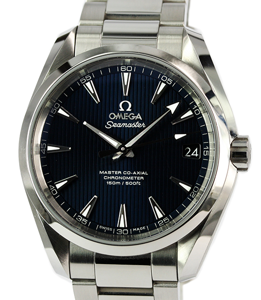 | Omega Aqua Terra Co AxialModel: 023110392103002 Watch Description: Steel Case with Screw Down Crown and Sapphire Display Back, Dark Blue Stripped Dial, 150 meter Water Resistant, Automatic Co-Axial Chronometer, Calibre 8500. Steel Bracelet with Double Folding Clasp. Age: 2015 Movement: Automatic Case Size: 39mm Includes: Box & Papers Condition: 9.5/10 New Retail Price: NZ$8,250.00 Price: SOLD |