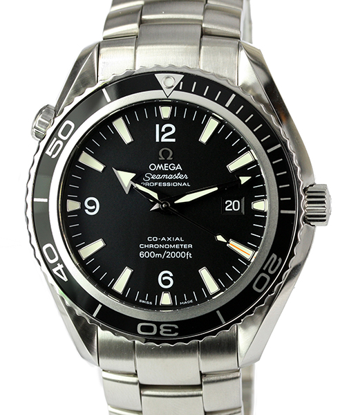 | Omega Planet OceanModel: 22005000 Watch Description: Steel case and bracelet, black dial and bezel, 600 meter water resistant, with screw down crown and helium release valve Age: 2011 Movement: Automatic Movement Calibre: 2500 Case Size: 46mm Includes: Box & Papers Condition: 9/10 New Retail Price: NZ$8,800.00 Price: SOLD |