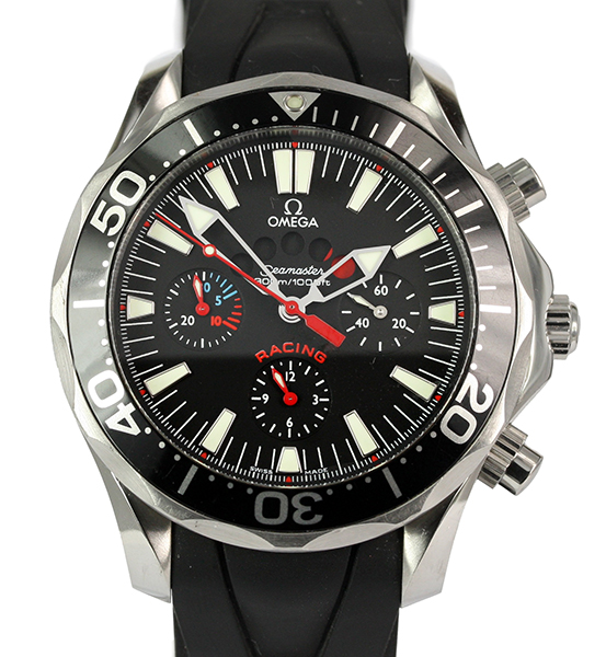 | Omega Omega Seamaster America's Cup Regatta Racing ChronographModel: 2569.52.00 Watch Description: Stainless Steel 300 meter water resistant case, chronograph chronometer with regatta count down yacht racing function. Rubber strap attached Age: 2005 Movement: Automatic Case Size: 44mm Includes: Box Price: SOLD