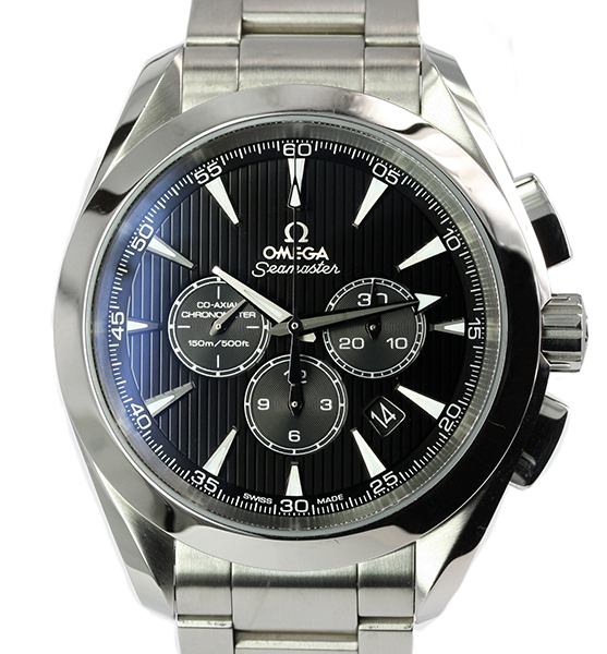 | Omega Aqua Terra Co Axial ChronographModel: 023110445001001 Watch Description: Steel Case, 150m 500ft, Black Dial, Sapphire Crystal Display Back, Steel Bracelet with Deployant Clasp. Age: 2015 Movement: Automatic Movement Calibre: 3313 Case Size: 44mm Includes: Box & Papers Condition: 9.5/10 New Retail Price: NZ$10,295.00 Price: SOLD |