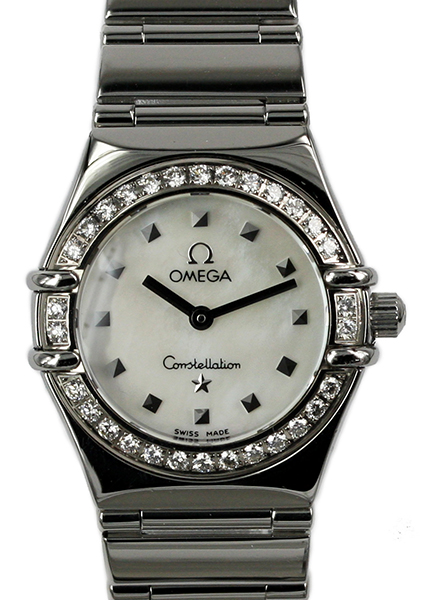 | Omega Ladies My ChoiceModel: 14657100 Watch Description: Steel case and bracelet, mother of pearl dial diamond set bezel Age: 2005 Movement: Quartz Case Size: 25mm Includes: Box & Papers Condition: 9/10 Price: SOLD |