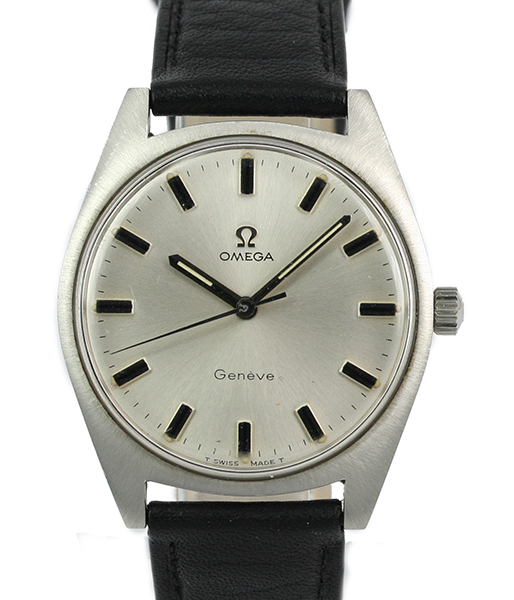 | Omega Vintage GeneveModel: 135.041 Watch Description: Steel case and silver dial. Manual wind movement. Watch fitted to after market leather strap with original Omega steel tang buckle. Age: 1969 Movement: Manual Movement Calibre: 601 Case Size: 35mm Includes: Box & Papers Condition: 9/10 Price: SOLD |
