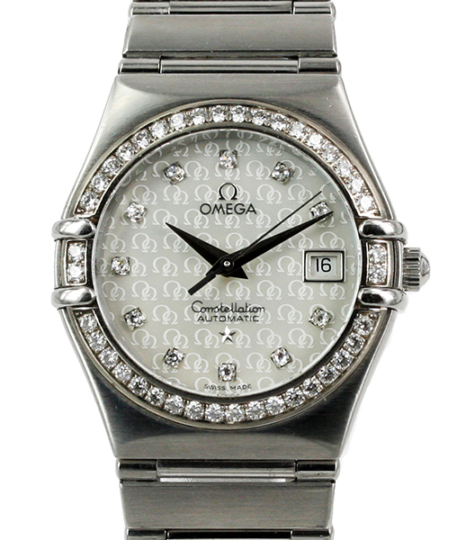 | Omega Ladies Mid Size ConstellationModel: 14987500 Watch Description: Steel case with diamond set bezel and diamond set dial. Steel bracelet with folding clasp