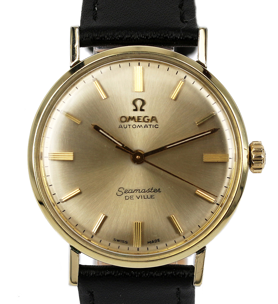 | Omega Vintage Seamaster De VilleModel: 682184-1 Watch Description: Gold metal case and leather strap Age: 1960s Movement: Automatic Movement Calibre: 550 Case Size: 35mm Includes: Box & Papers Condition: 9/10 Price: SOLD |
